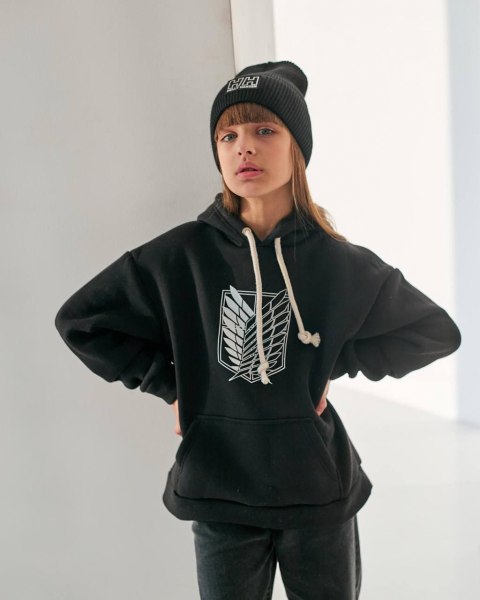 Утепленное худи для девочки черное