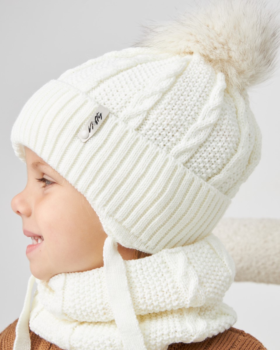 Зимовий комплект (шапка на зав’язках із натуральним помпоном + хомут) створений спеціально для дівчат. Подвійна модель з флісовим утепленням і відворотом надійно зберігає тепло та комфорт навіть у найлютіші морози.