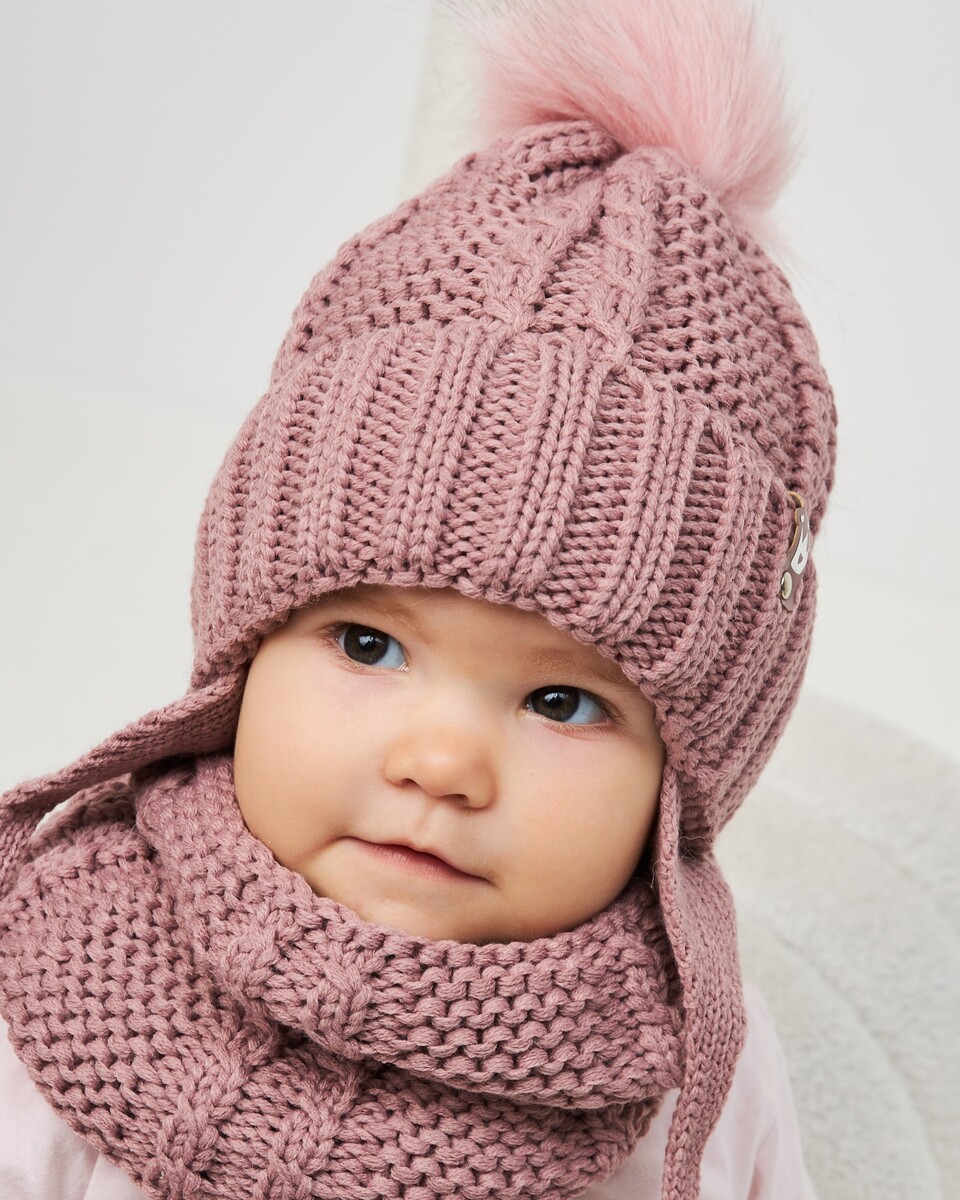 Зимовий комплект (шапка на зав’язках із натуральним помпоном + хомут) створений спеціально для найменших дівчат. Модель має подвійний шар із флісовим утепленням та відворот, що забезпечує тепло, комфорт і надійний захист у холодну пору року.