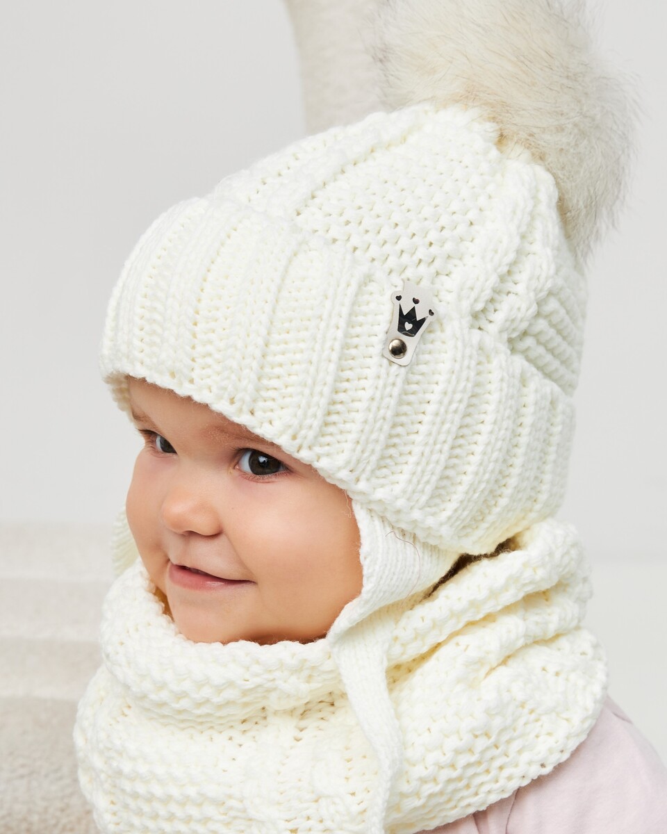 Зимовий комплект (шапка на зав’язках із натуральним помпоном + хомут) створений спеціально для найменших дівчат. Модель має подвійний шар із флісовим утепленням та відворот, що забезпечує тепло, комфорт і надійний захист у холодну пору року.