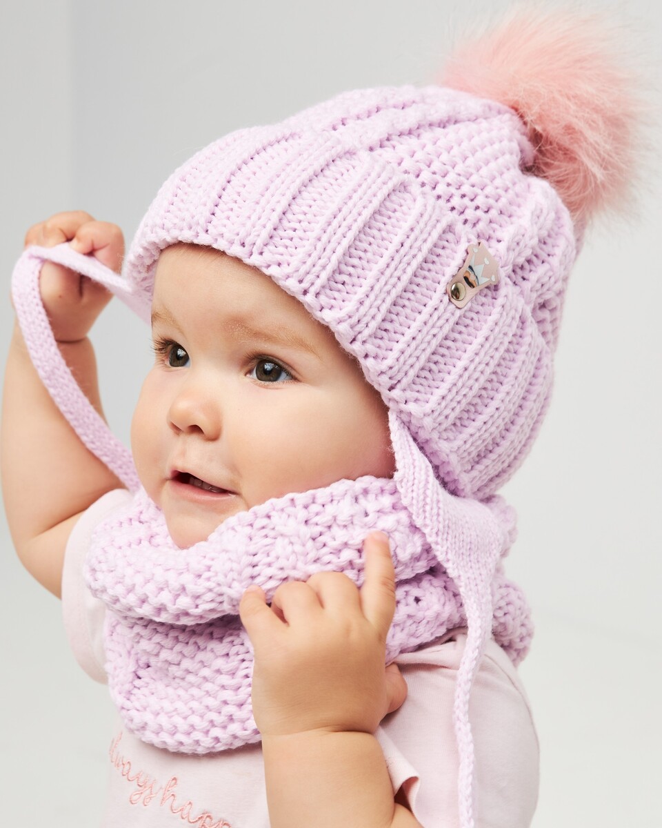 Зимовий комплект (шапка на зав’язках із натуральним помпоном + хомут) створений спеціально для найменших дівчат. Модель має подвійний шар із флісовим утепленням та відворот, що забезпечує тепло, комфорт і надійний захист у холодну пору року.