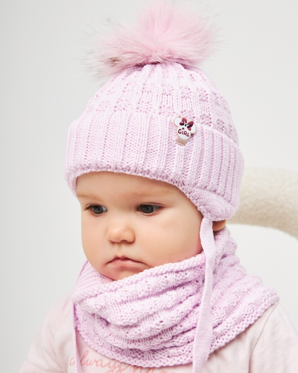 Зимовий комплект (шапка на зав’язках із натуральним помпоном + хомут) — ідеальний вибір для маленьких дівчат. Модель має подвійний шар із флісовим утепленням та зручний відворот, що забезпечує тепло, комфорт і надійний захист від холоду.