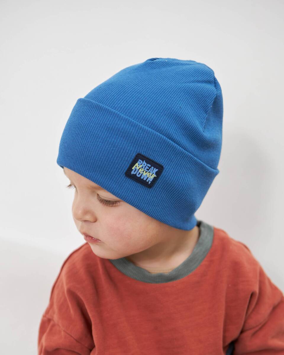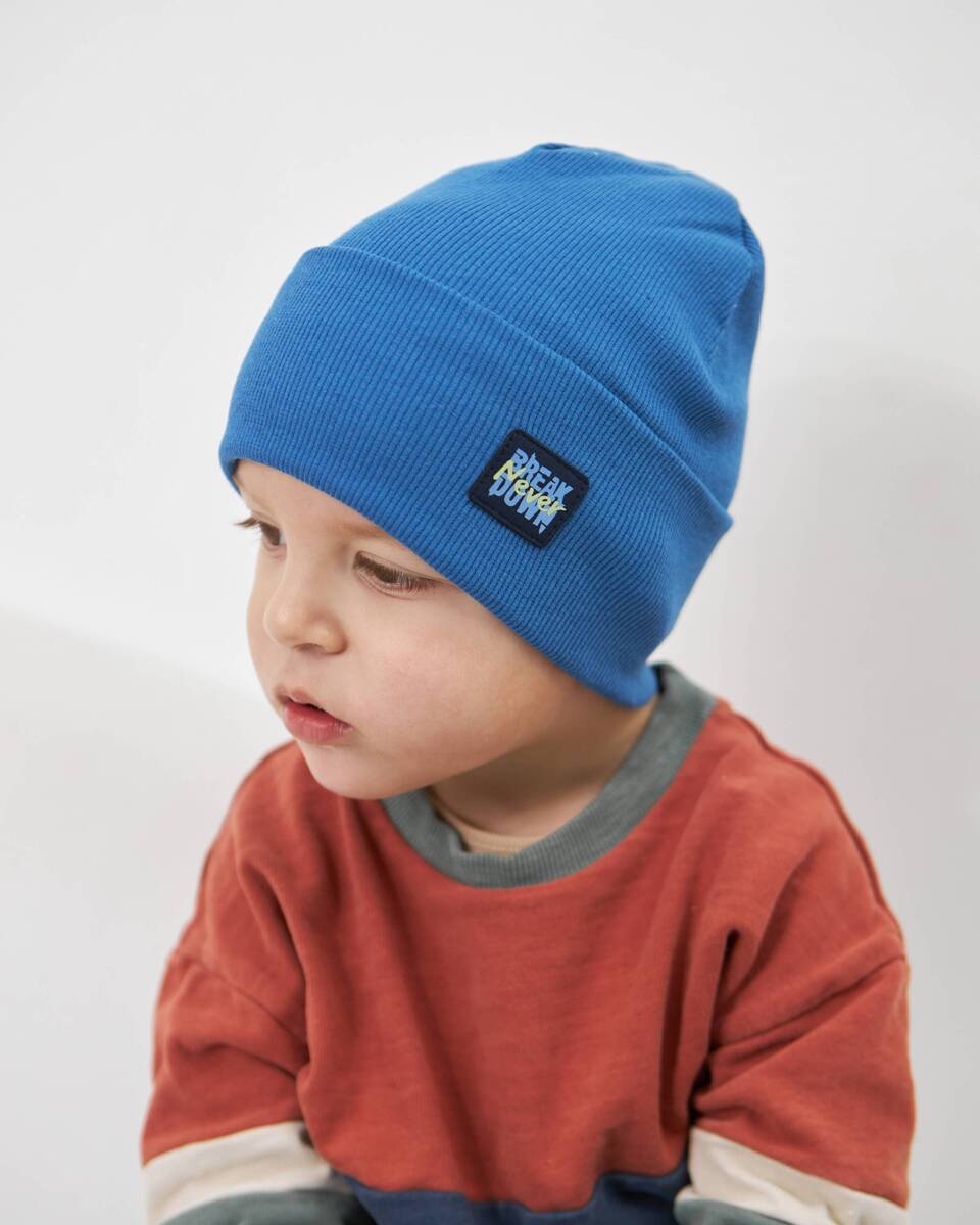 Модна дитяча шапка для хлопчиків, артикул 3418-5. Легка та зручна модель з відворотом стане чудовим доповненням до повсякденного образу у весняно-осінній період. Матеріал: 95% натуральної бавовни та 5% еластану. Розмір 44-50. Виготовлена на фабриці Vertex, де ми поєднуємо якість і стиль.