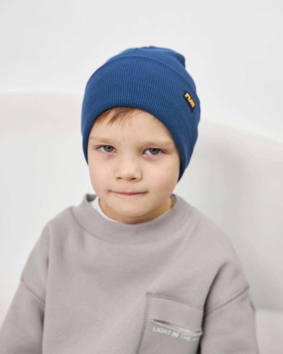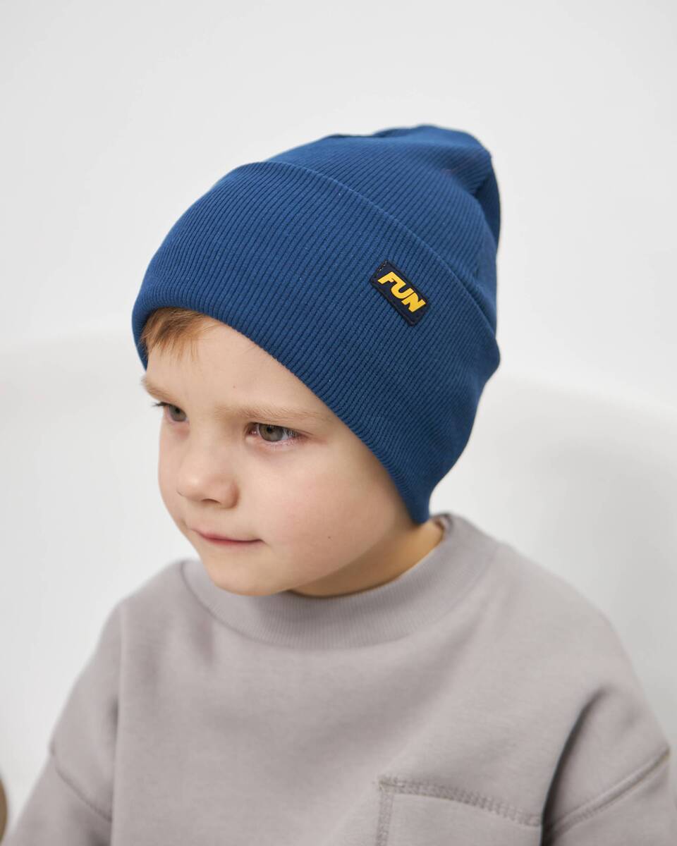 Модна дитяча шапка для хлопчиків, артикул 3424-1. Легка та зручна модель з відворотом стане чудовим доповненням до повсякденного образу у весняно-осінній період. Матеріал: 95% натуральної бавовни та 5% еластану. Розмір 50–56. Виготовлена на фабриці Vertex, де ми поєднуємо якість і стиль.