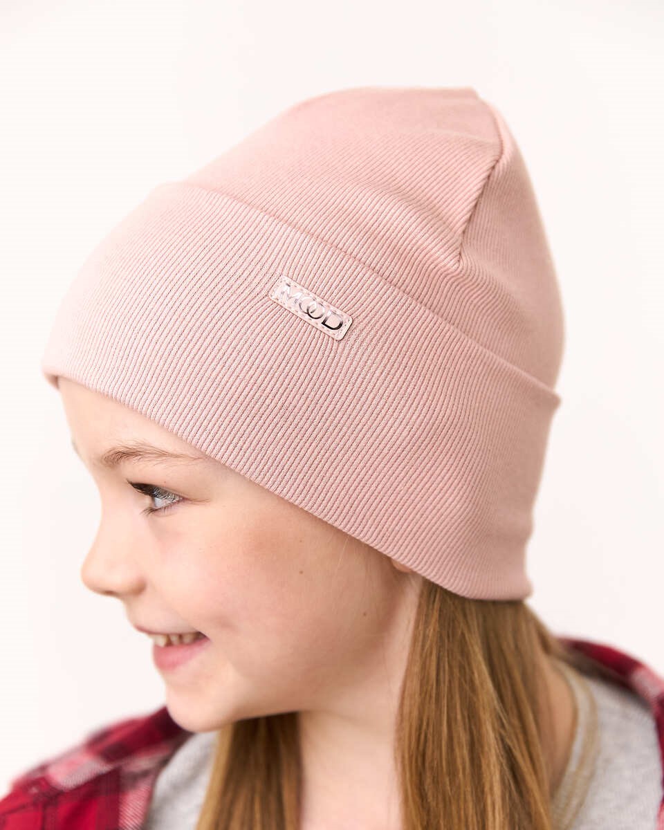 Шапка одношарова з відворотом для дівчаток, артикул 3668-2, ідеально підходить на весняно-осінній сезон. Розмір 50-56. Склад: 95% бавовна і 5% еластан. Представлена в 5 кольорах. Виготовлена на власному виробництві Vertex.