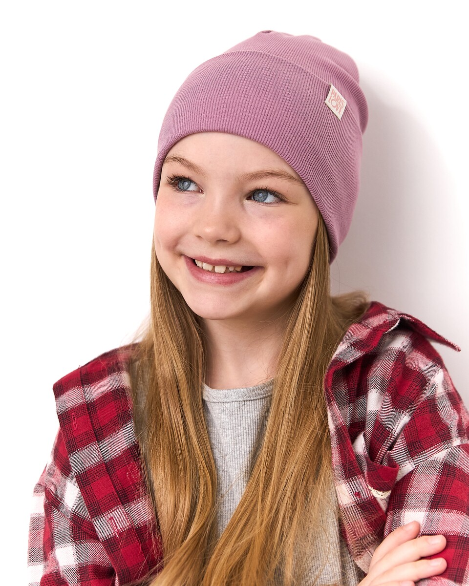 Шапка одношарова з відворотом для дівчаток, артикул 3670-5, ідеально підходить на весняно-осінній сезон. Розмір 50-56. Склад: 95% бавовна і 5% еластан. Представлена в 5 кольорах. Виготовлена на власному виробництві Vertex.