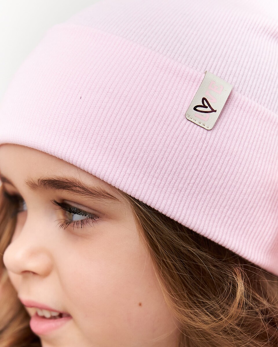Шапка одношарова з відворотом для дівчаток, артикул 3671-2, ідеально підходить на весняно-осінній сезон. Розмір 44-50. Склад: 95% бавовна і 5% еластан. Представлена в 5 кольорах. Виготовлена на власному виробництві Vertex.