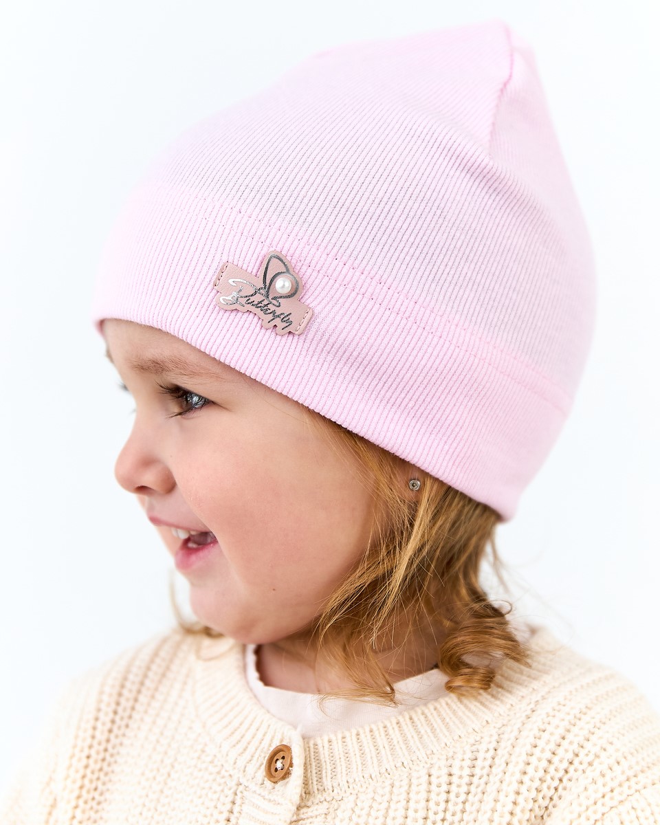 Шапка одношарова для дівчаток, артикул 3705-2, ідеально підходить на весняно-осінній сезон. Розмір 40-46. Склад: 95% бавовна і 5% еластан. Представлена в 5 кольорах. Виготовлена на власному виробництві Vertex.