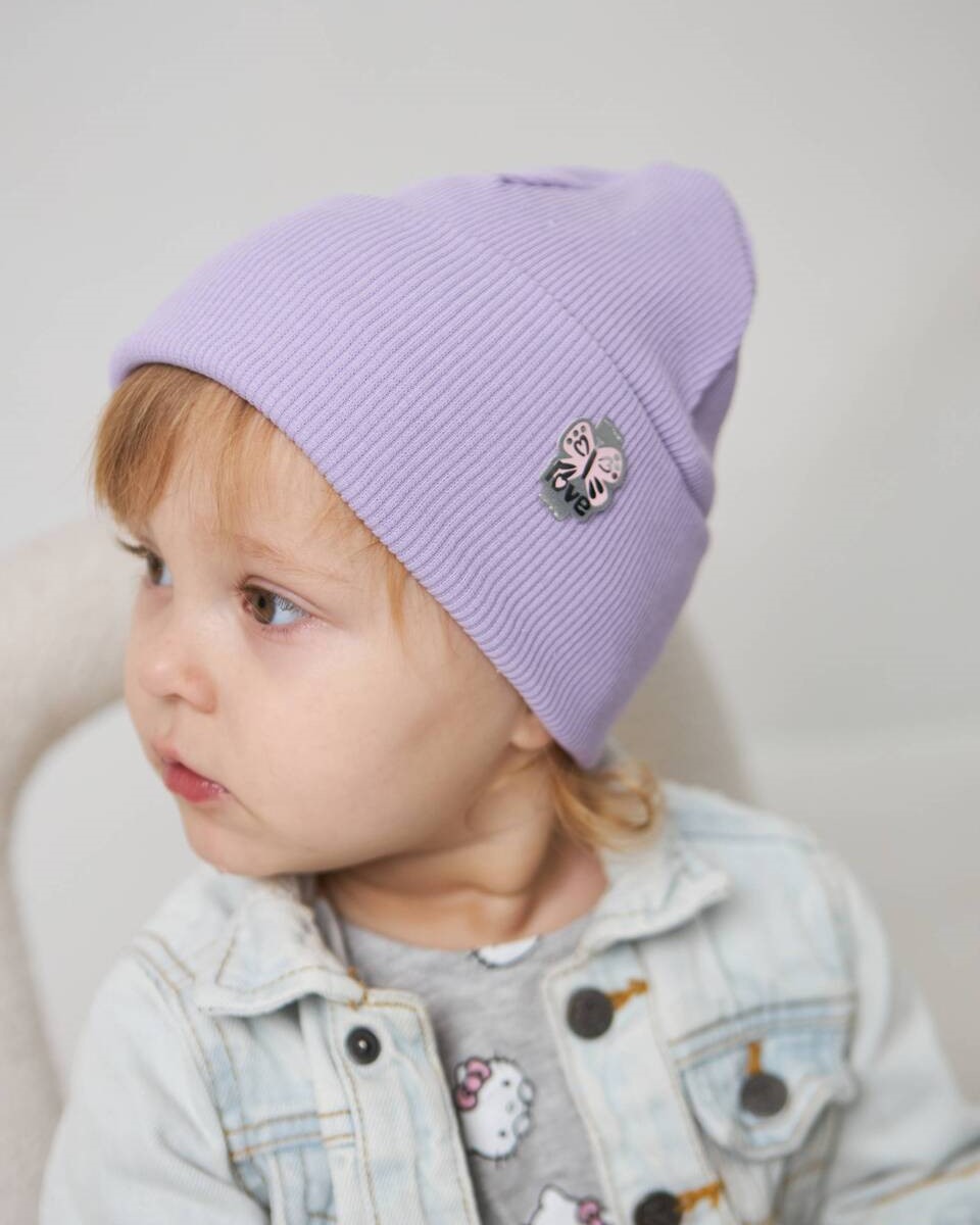 Шапка одношарова з відворотом для дівчаток, артикул 3419-2, ідеально підходить на весняно-осінній сезон. Розмір 44-50. Склад: 95% бавовна і 5% еластан. Представлена в 5 кольорах. Виготовлена на власному виробництві Vertex.