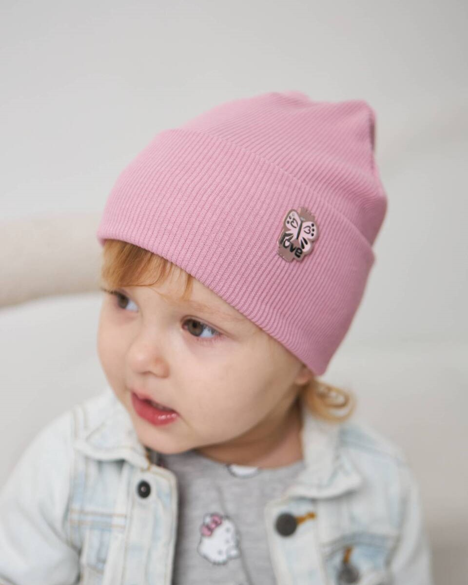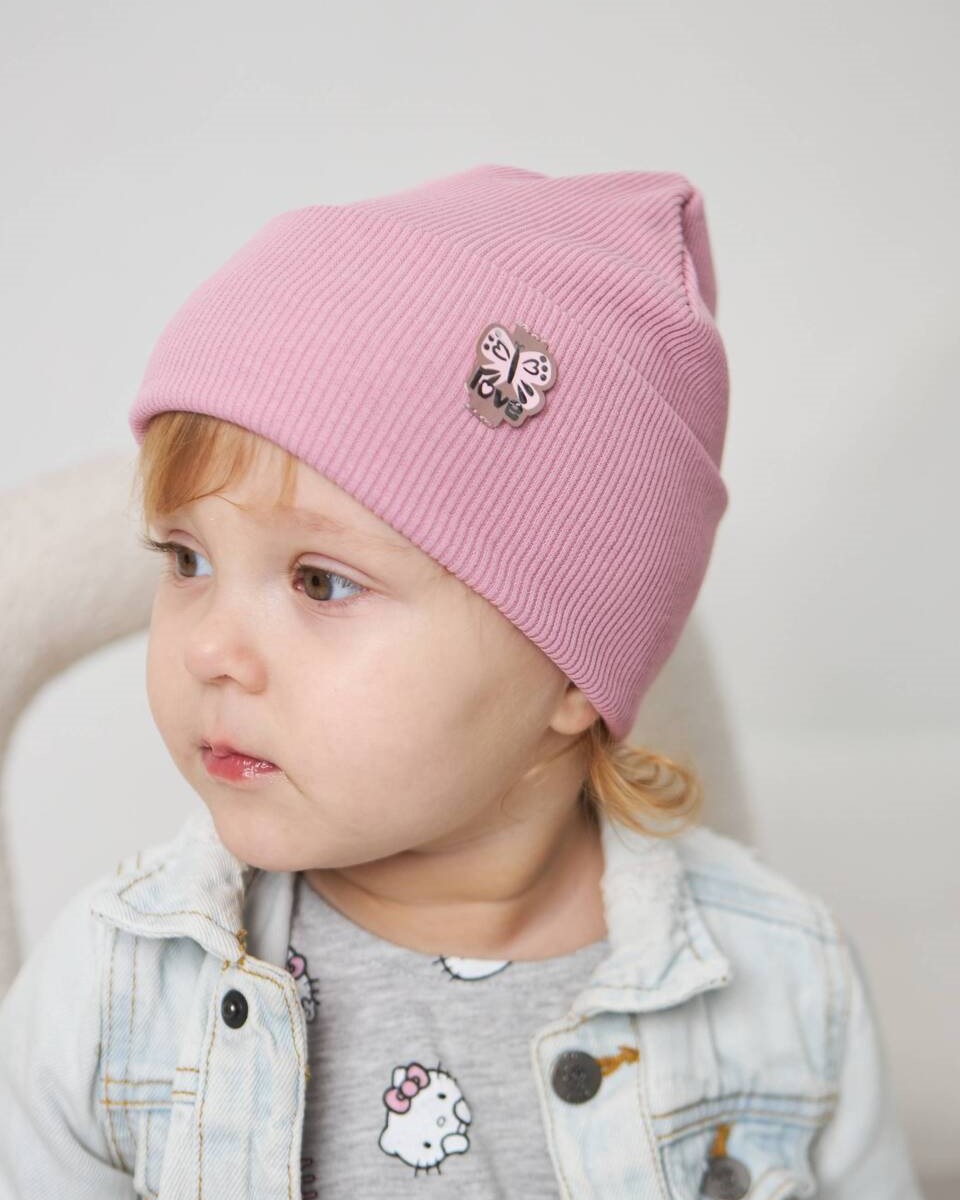 Шапка одношарова з відворотом для дівчаток, артикул 3419-4, ідеально підходить на весняно-осінній сезон. Розмір 44-50. Склад: 95% бавовна і 5% еластан. Представлена в 5 кольорах. Виготовлена на власному виробництві Vertex.