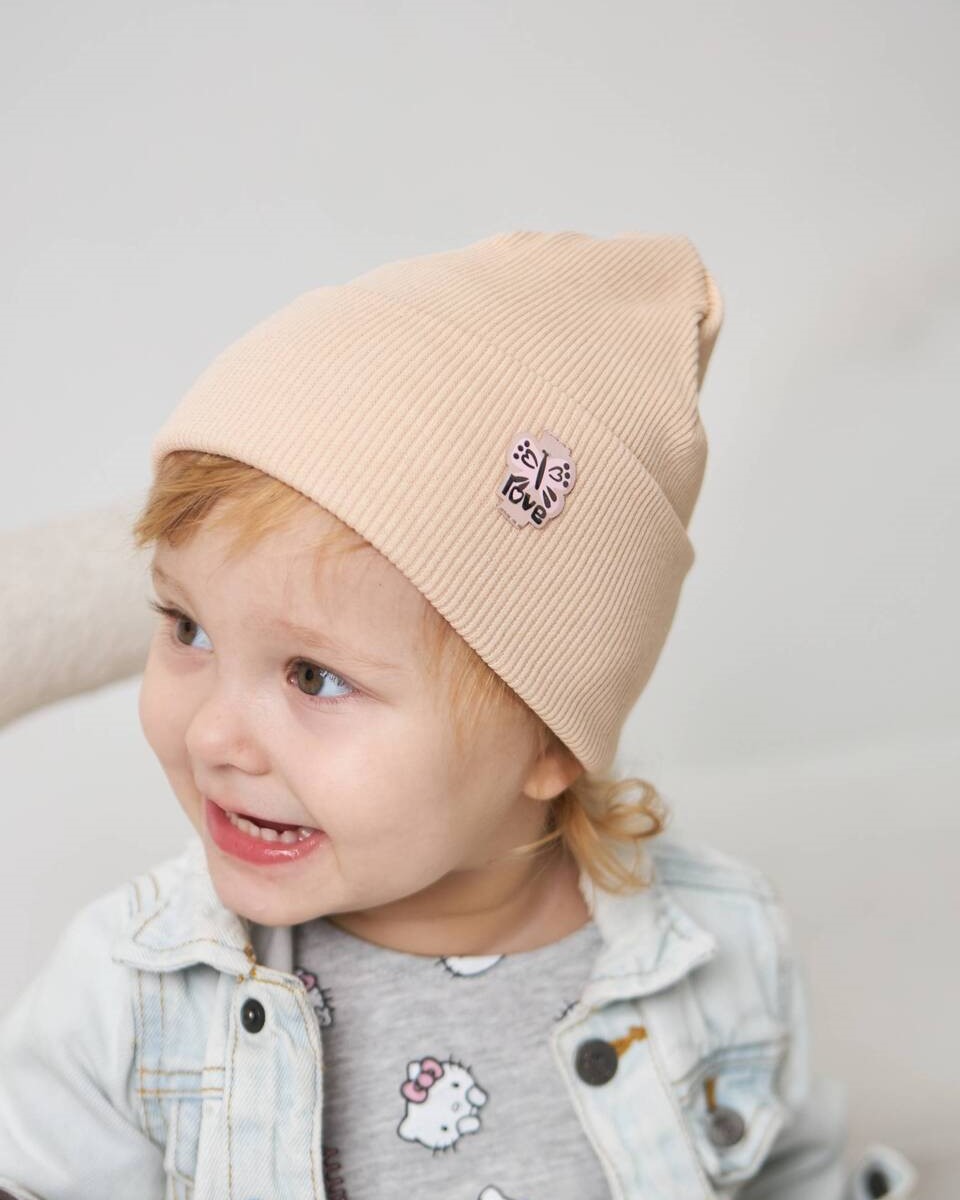 Шапка одношарова з відворотом для дівчаток, артикул 3419-5, ідеально підходить на весняно-осінній сезон. Розмір 44-50. Склад: 95% бавовна і 5% еластан. Представлена в 5 кольорах. Виготовлена на власному виробництві Vertex.