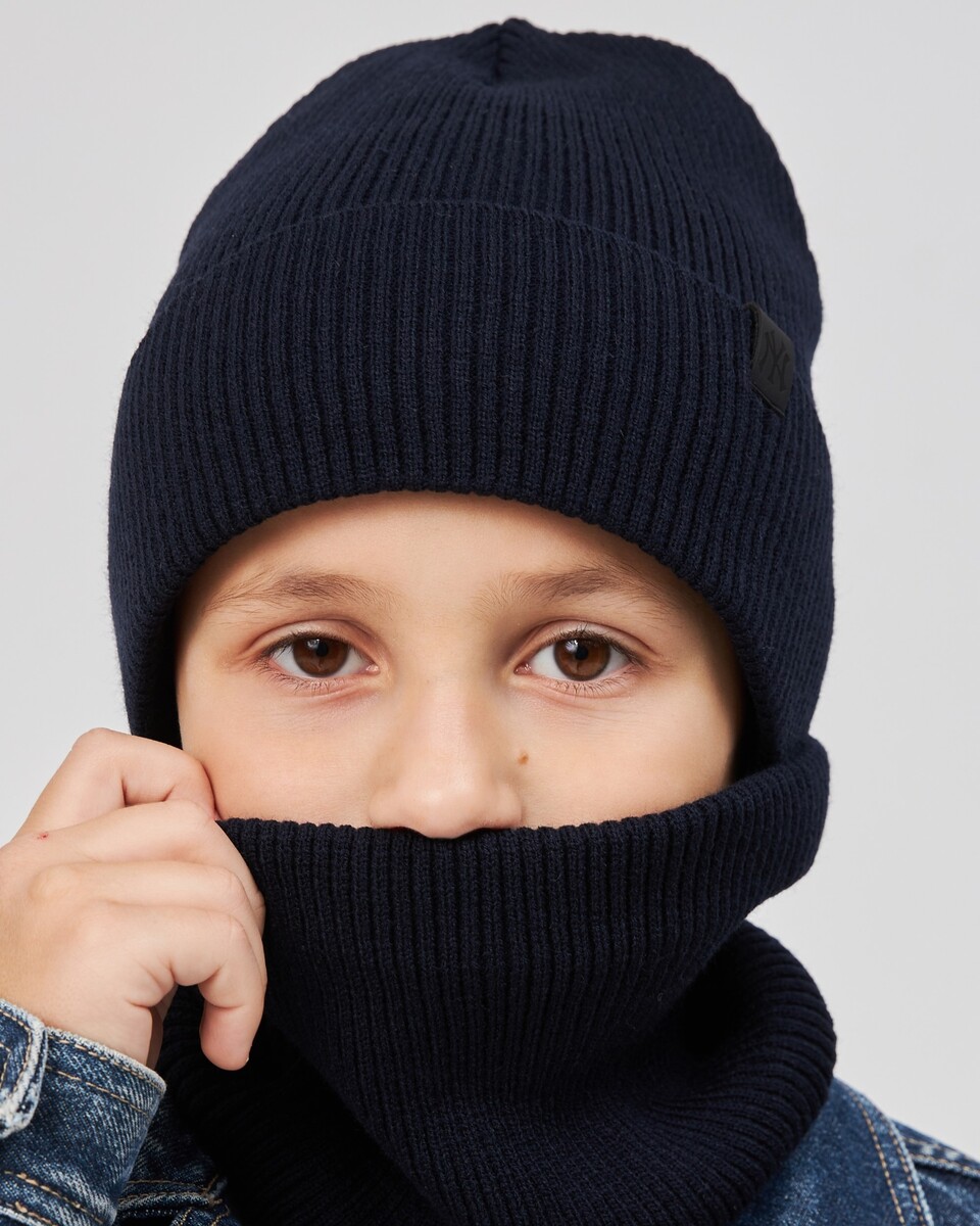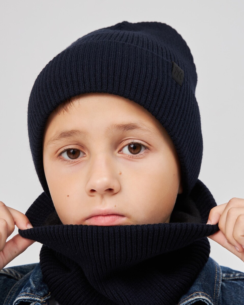 Зимовий комплект шапка + хомут для хлопчиків — теплий, м’який і стильний вибір на холодну пору року. Виготовлений із 100% акрилу, має подвійний шар із флісовим утепленням та зручний відворот.