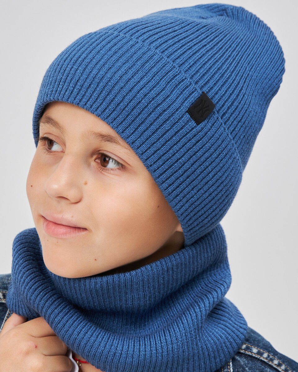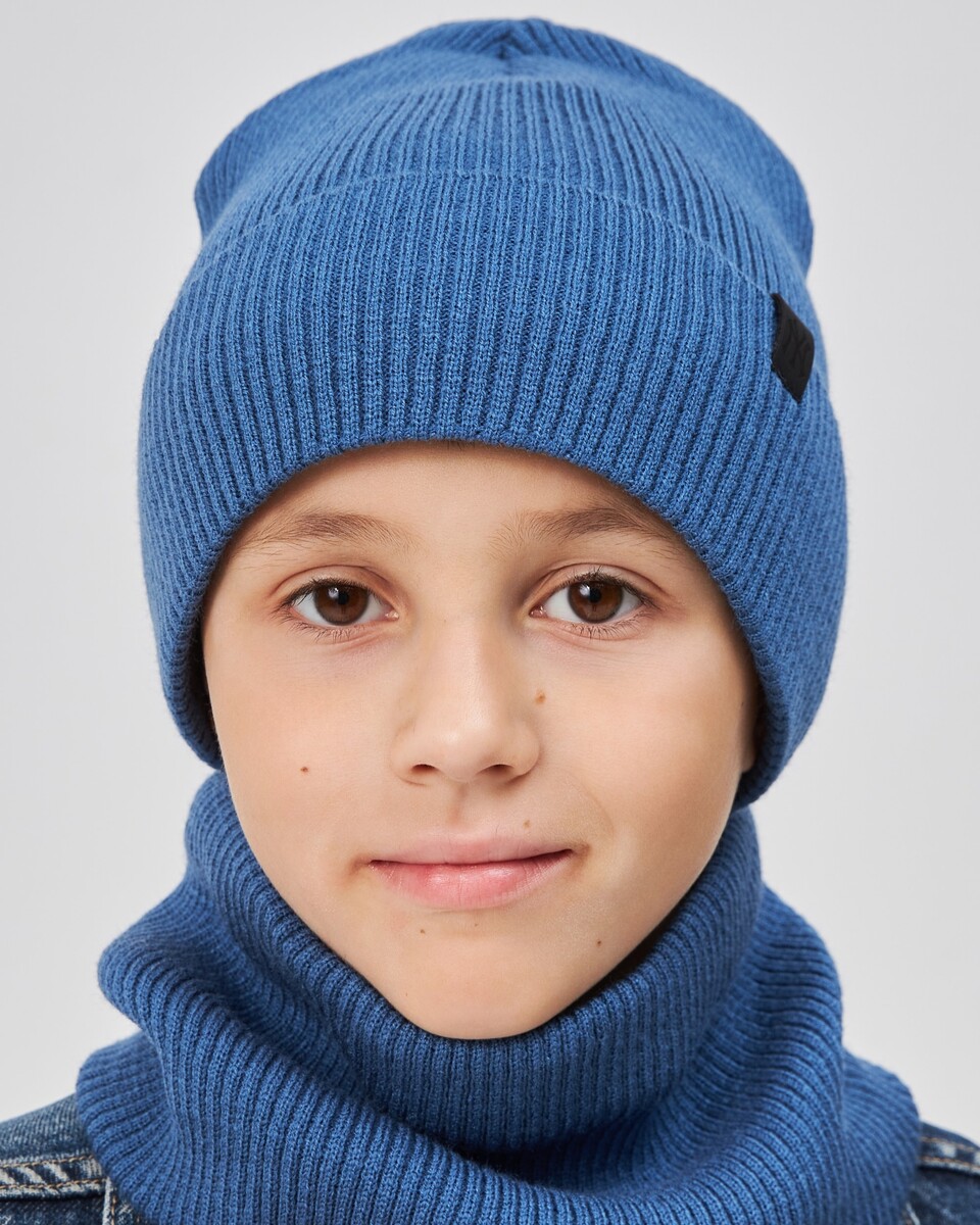 Зимовий комплект шапка + хомут для хлопчиків — теплий, м’який і стильний вибір на холодну пору року. Виготовлений із 100% акрилу, має подвійний шар із флісовим утепленням та зручний відворот.