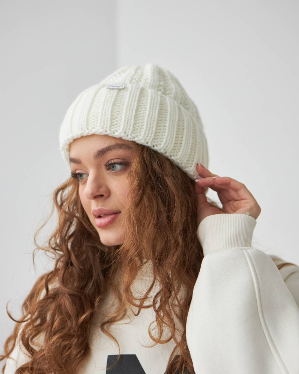 Стильна шапка з відворотом яка забезпечує тепло і комфорт  у прохолодні дні. Розмір 50-56 підходить для дітей  підлітків та жінок. Шапка виготовлена з м’якої та еластичної пряжі, приємний на дотик. Прикраса у вигляді нашивки.  Склад – 90% ACRYL, 10% POLYESTER.
