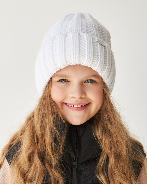 Стильна шапка з відворотом яка забезпечує тепло і комфорт  у прохолодні дні. Розмір 50-56 підходить для дітей  підлітків та жінок. Шапка виготовлена з м’якої та еластичної пряжі, приємний на дотик. Прикраса у вигляді нашивки.  Склад – 90% ACRYL, 10% POLYESTER.
