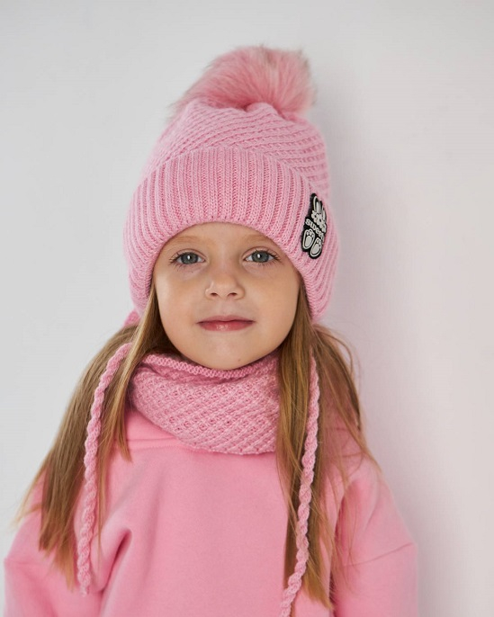 Зимовий вязаний комплект (шапка і хомут) для дівчинки - Артикул 3078-2